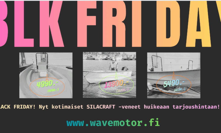 Viimeiset varastossamme olevat kotimaiset Silacraftin valmistamat veneet huikeaan hintaan! Kurkkaappas tästä>> https://wavemotor.fi/tuote-osasto/veneet/silacraft-veneet/ pyydä vaihtotarjous samalla! Tarjous on voimassa 31.12.2025 saakka.