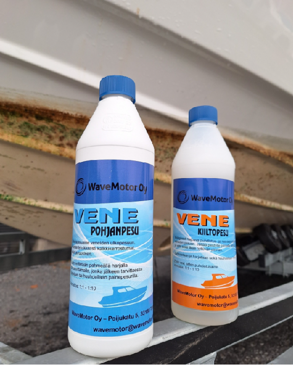 Muista huuhdella vene huolellisesti puhdistuksen jälkeen, sillä puhdistusaineiden jäämät voivat vahingoittaa pintaa pitkällä aikavälillä. WaveMotor tarjoaa laajan valikoiman ympäristöystävällisiä ja tehokkaita puhdistusaineita kaikille pohjamateriaaleille.