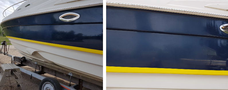 - Levitä veneen pohjamateriaalille sopiva puhdistusaine tasaisesti koko pinnalle, aloittaen pohjasta ylöspäin.