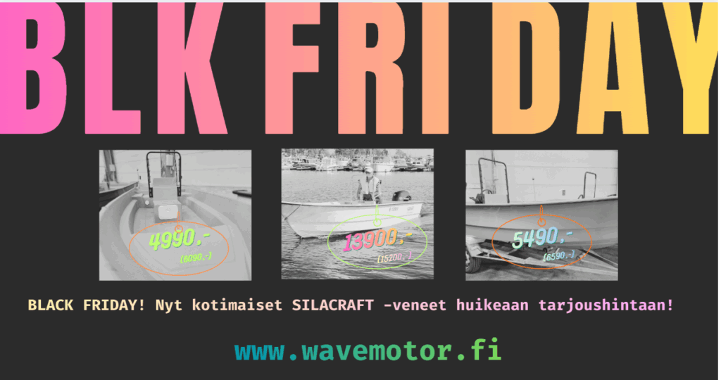 Viimeiset varastossamme olevat kotimaiset Silacraftin valmistamat veneet huikeaan hintaan! Kurkkaappas tästä>> https://wavemotor.fi/tuote-osasto/veneet/silacraft-veneet/ pyydä vaihtotarjous samalla!
