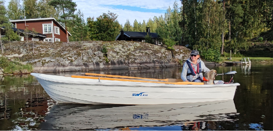 - Kotimainen Suvi 450 ja Yamaha M20 sähköperämoottori on sopiva yhdistelmä soutu-moottoriveneeksi mökki- ja kalastuskäyttöön.